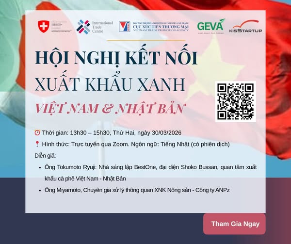 Webinar được tổ chức trong khuôn khổ dự án GEVA nhằm giúp doanh nghiệp hiểu rõ yêu cầu thị trường Nhật Bản, quy trình nhập khẩu cũng như cơ hội kết nối với các đối tác tiềm năng.